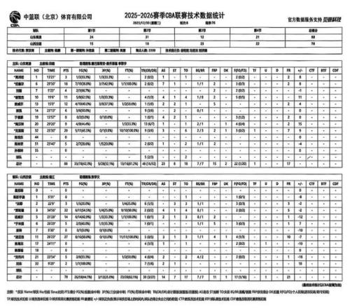 北京时间2025年12月30日19:35,2025-2026赛季CBA联赛第八轮继续进行,山西汾酒赴客场挑战山东高速。两队历史上共交手40次,山西汾酒14胜26负,上赛季常规赛两队交手2次,山西汾酒2胜0负。本场比赛,山西队状态低迷,特别是上半场,进攻犹豫、防守松懈,篮板球保护不佳;中场调整后虽有所改善,但由于此前落后过多,最终无力翻盘,全场比赛结束,山西汾酒78:88不敌山东高速。