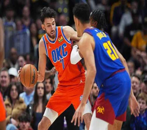 雷霆:亚历山大34分5篮板13助攻,华莱士7记三分27分均创生涯新高,霍姆格伦14分3盖帽,维金斯3记三分14分。掘金:约基奇16分7篮板8助攻6失误,沃特森5记三分29分,穆雷12分12助攻,瓦兰丘纳斯13分。